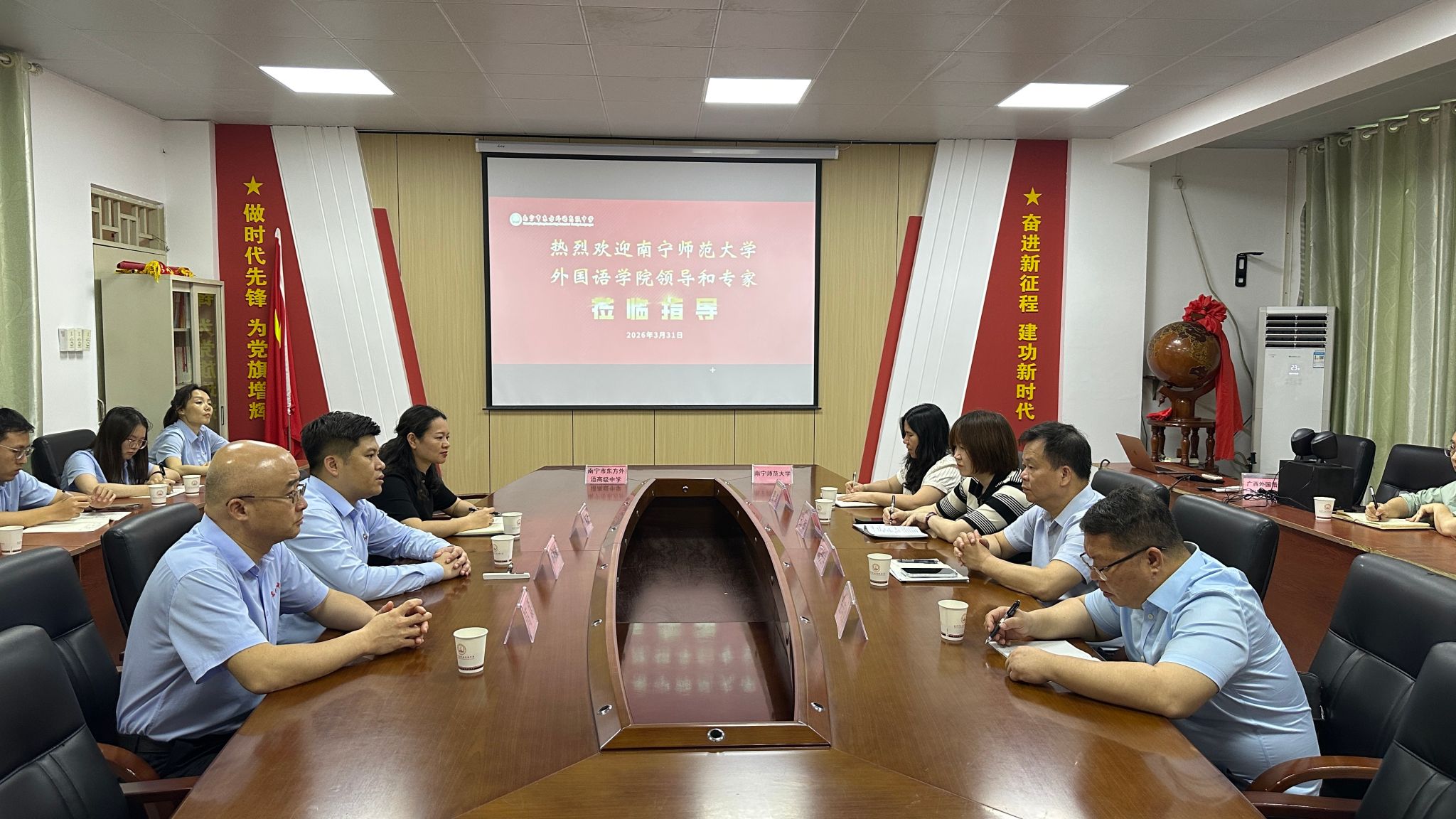 陈光伟院长、邱晖副书记、张晓鹏副院长及各教研室主任、毕业年级辅导员一行,前往南宁市东方外国语高中开展访校拓岗合作交流,南宁市东方外国语高中杨祯毅书记、何丽丽校长、高磊执行校长及相关部门负责人热情接待。
