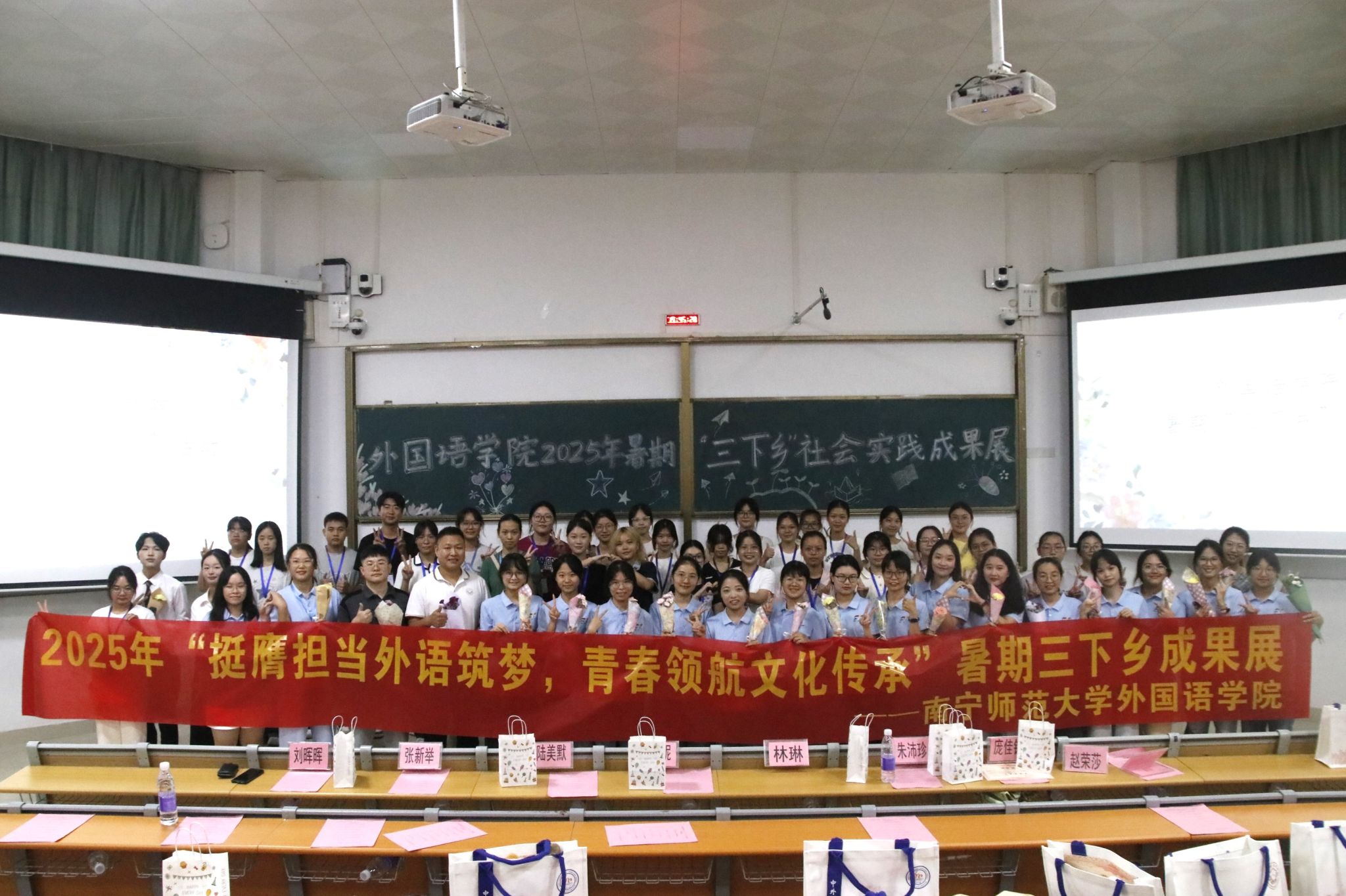 于10月14日在武鸣校区2号教学楼209教室举办以“挺膺担当外语筑梦,青春领航文化传承”为主题的2025年暑期“三下乡”社会实践活动成果展。参加本次活动的有GG扑克(中国)唯一官方网站