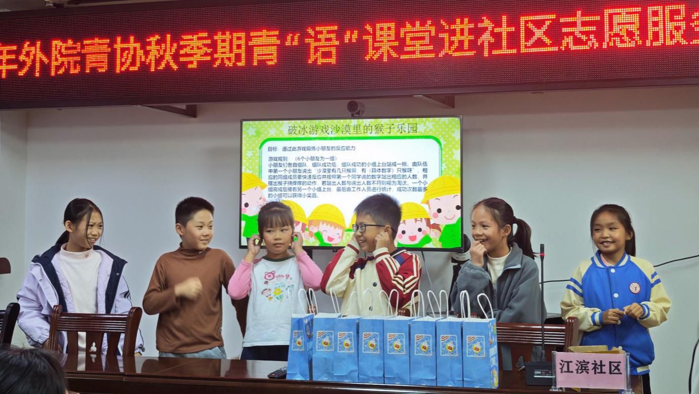 青年志愿者协会携手江滨社区,启动2025年秋季“青”语课堂进社区志愿服务。19名青年志愿者化身“小老师”,为社区小朋友带来精准化、趣味化的义务家教活动。
