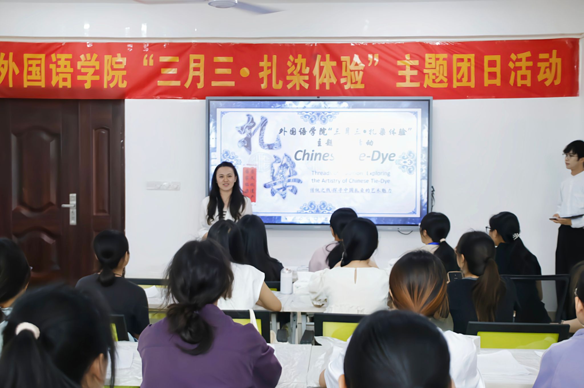 活动伊始,现场播放了介绍扎染工艺的短视频,为在场师生营造了浓郁的民族文化氛围。随后,学工办蔡梓晴老师代表GG扑克